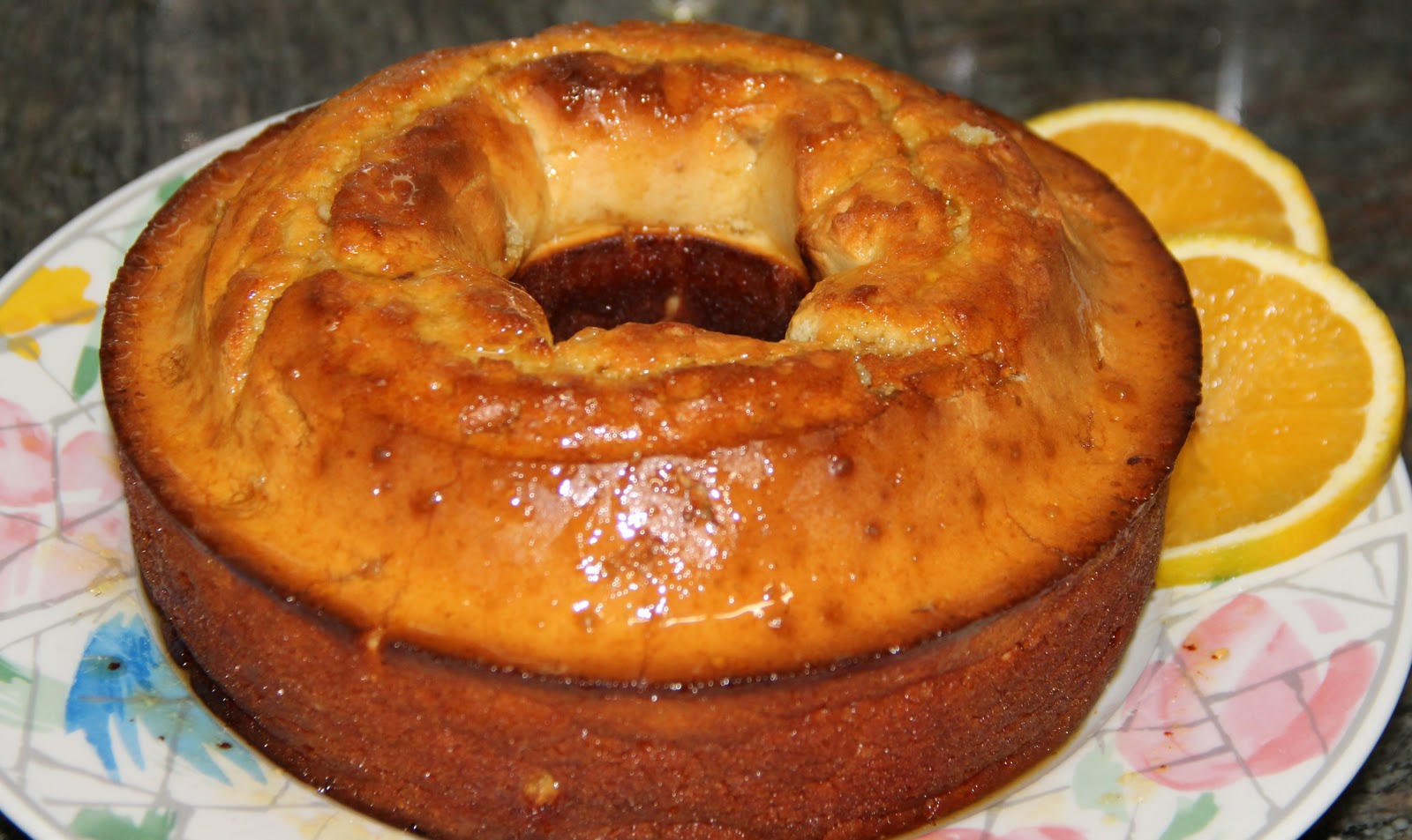 5-Asse em fôrma grande com furo central (25cm de diâmetro), em forno médio (180ºC), preaquecido, por cerca de 1 hora. Desenforme o bolo ainda quente.
