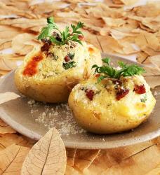 Unte um refratário retangular pequeno (31 x 19 cm) e reserve. Coloque cada batata em uma superfície lisa e com a mão dê um pequeno murro, achatando-as ligeiramente. Coloque-as uma ao lado da outra no refratário untado e reserve. Em uma frigideira pequena aqueça 1 colher (sopa) do azeite e doure o alho. Despeje sobre as batatas e reserve. Preaqueça o forno em temperatura média (180°C). Em uma panela média aqueça o restante do azeite e doure a cebola. Junte a cenoura, o peixe, a água e cozinhe em fogo médio com a panela destampada por 10 minutos. Passe o caldo por peneira e junte a maionese Hellmann's. Misture até formar um molho liso e cremoso. Coloque o refogado de peixe sobre as batatas e cubra com o molho. Leve ao forno por 15 minutos. Retire do forno e sirva em seguida.